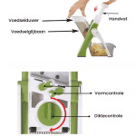 40 variabele snijdiktes (0,5 mm tot 8 mm), 4 snijmodi