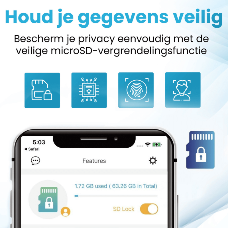 Je persoonlijke bestanden zijn van onschatbare waarde, en DriveX begrijpt dat. Dankzij de veilige microSD-vergrendelingsfunctie blijven je gegevens volledig beschermd tegen ongewenste toegang.