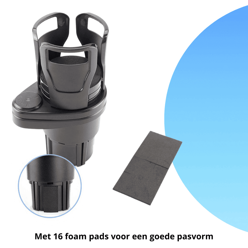 Deze handige gadget voor in je auto maakt van één bekerhouder twee bekerhouders en is uitschuifbaar zodat je niet alleen meer, maar ook grotere items kwijt kunt.