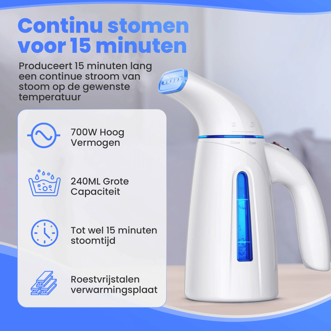 15 Minuten Lang Aanhoudende Stoom voor Perfect Gladde Kleding.