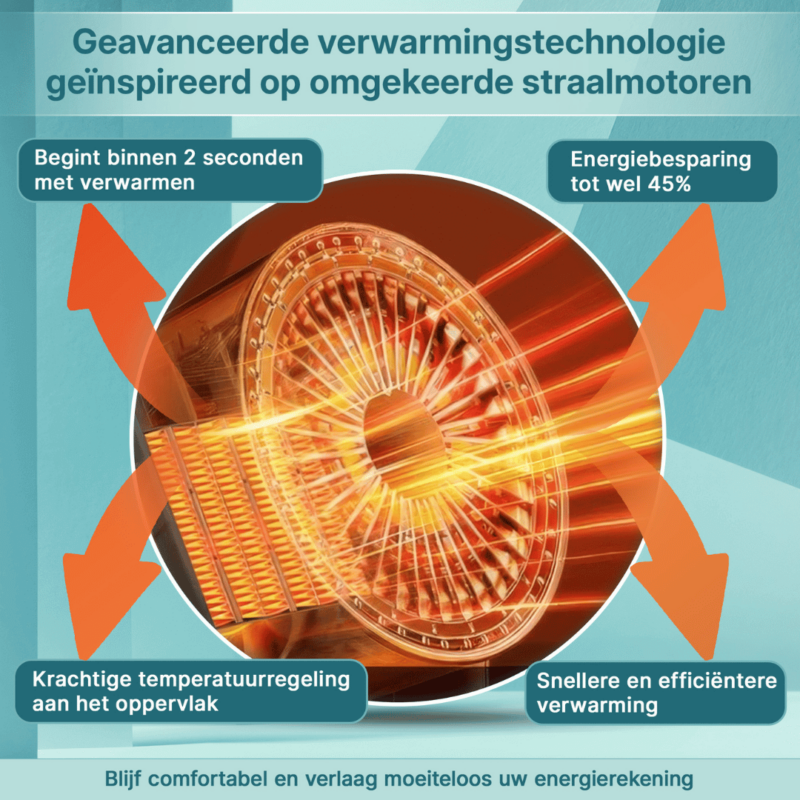 Met geavanceerde keramische technologie verwarm je elke ruimte in enkele minuten terwijl je tot 45% op energiekosten bespaart.