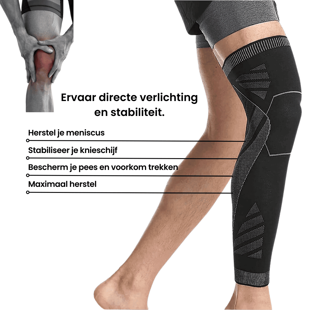 De Kleev Pro™ Kniecompressie Sleeve is niet alleen een schild tegen pijn, maar versnelt ook het herstelproces van je spieren na inspanning. Door verbeterde bloedcirculatie worden afvalstoffen sneller afgevoerd en krijgen je spieren de zuurstof en voedingsstoffen die ze nodig hebben, wat resulteert in minder pijn en sneller herstel.