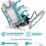 Met 60 W, 6500Lumens, 6000K koud helder licht, heb je geen donkere, onduidelijke gebieden of schittering meer in je huis. De verstelbare LED-garage lamp schijnt een verbazingwekkende hoeveelheid licht uit, heeft een uniek groothoekontwerp en zorgt voor het beste verlichte gebied. Door de hoge Lumen output is het gebruik van de garage LED lamp perfect voor garage, magazijn, kelder, schuur, kantoor, station, zolder, werkplaats, etalage enzovoorts.