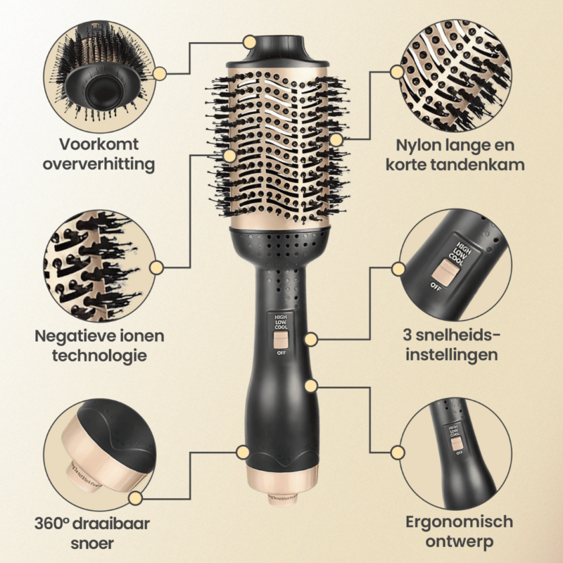 Geniet van perfect gestyled haar zonder de frustratie van klitten of trekken. Jouw droomkapsel is nu binnen handbereik, elke dag opnieuw!