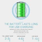 De ingebouwde lithiumbatterijen van de ventilator van de lithiumbatterij wordt opgeladen via USB. Volledig opgeladen kan hij tot 6-10 uur werken.