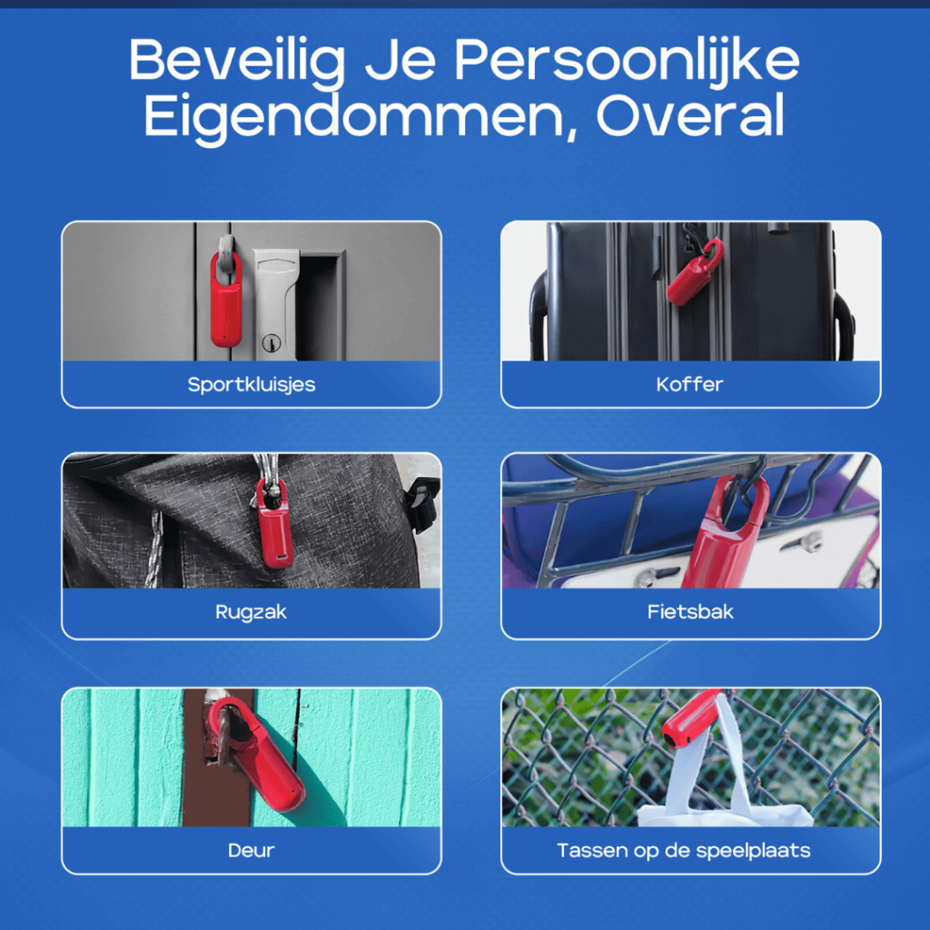 ✔ Universeel inzetbaar – Geschikt voor kluisjes, backpacks, koffers, deuren en meer. Veiligheid, altijd en overal.