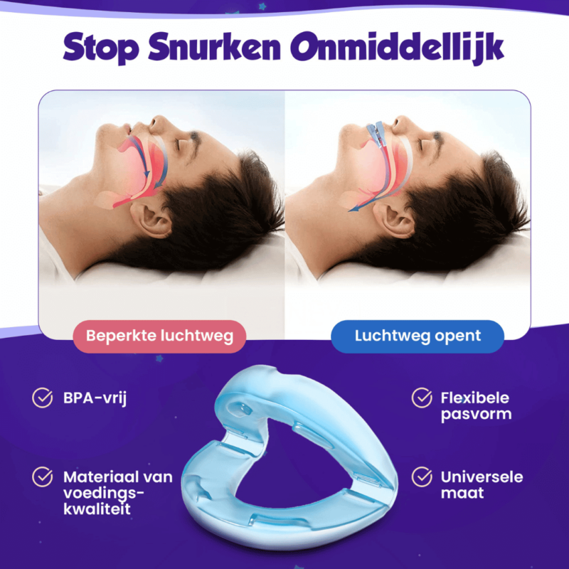 ✔ Snurken stopt direct vanaf de eerste nacht – Geniet meteen van een diepe, rustige nachtrust.