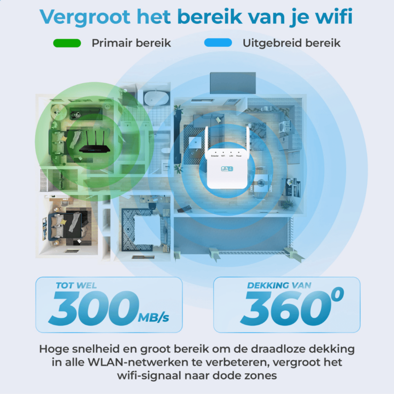 ✔ 360° Signaaldekking – Versterkt je WiFi tot in elke hoek van je huis zonder dode zones